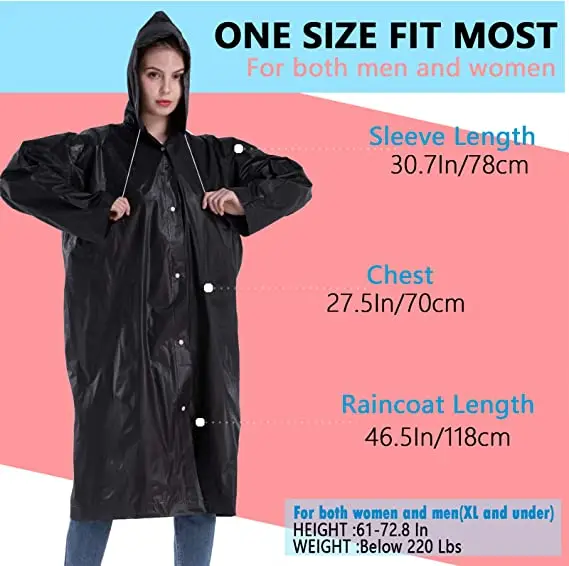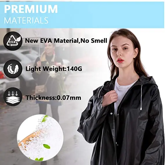* Premium Material: Our 2 pack raincoats are made of highest EVA material, thickness of 0.15mm, non-toxic, no odor, unlike the