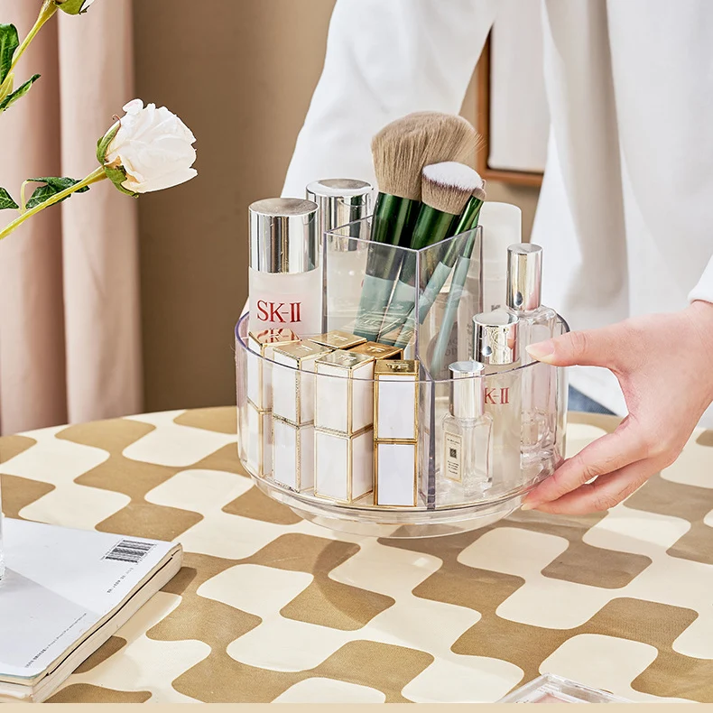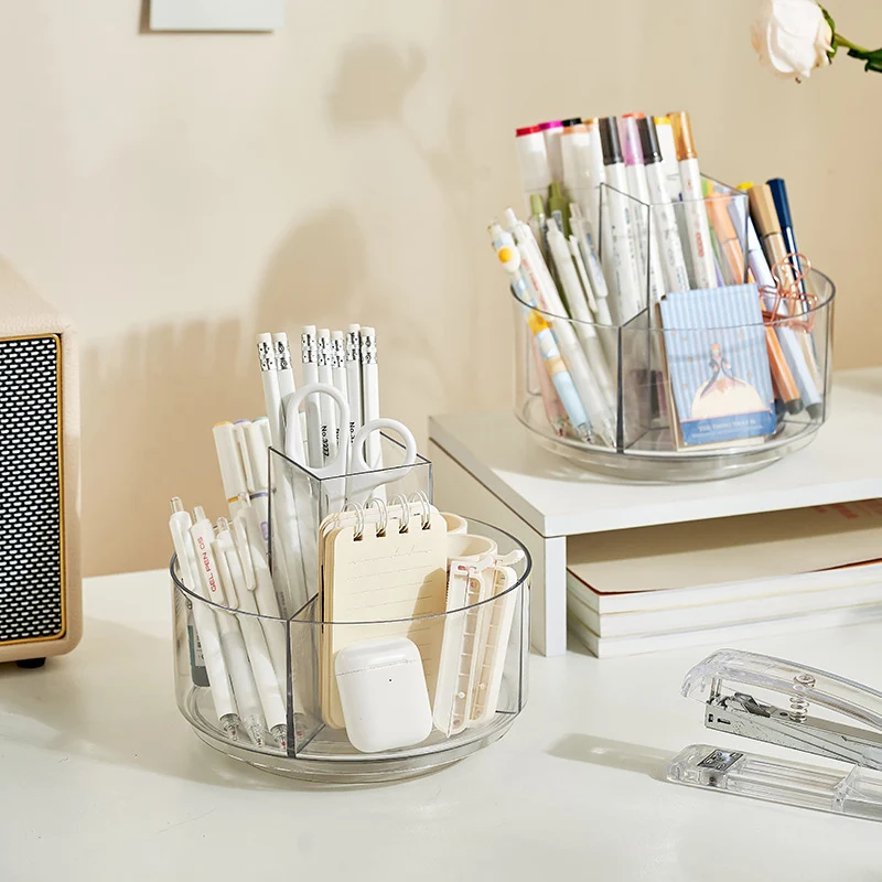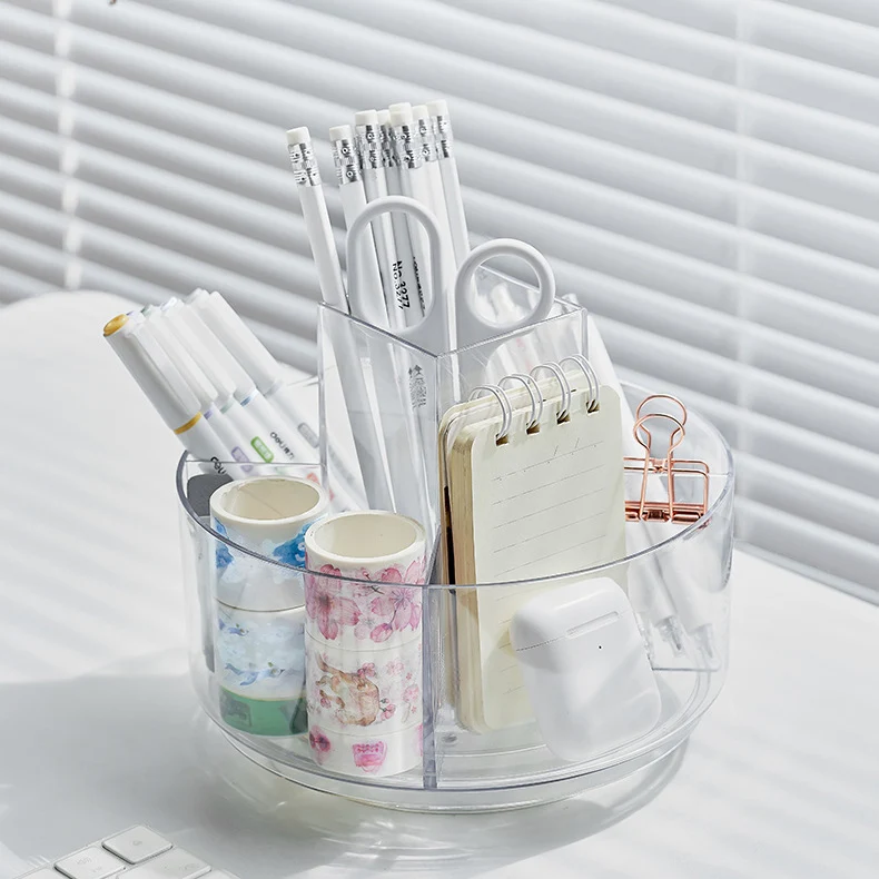 Новинка многофункциональные настольные канцелярские принадлежности косметика пластиковый прозрачный ПЭТ круглый вращающийся органайзер для