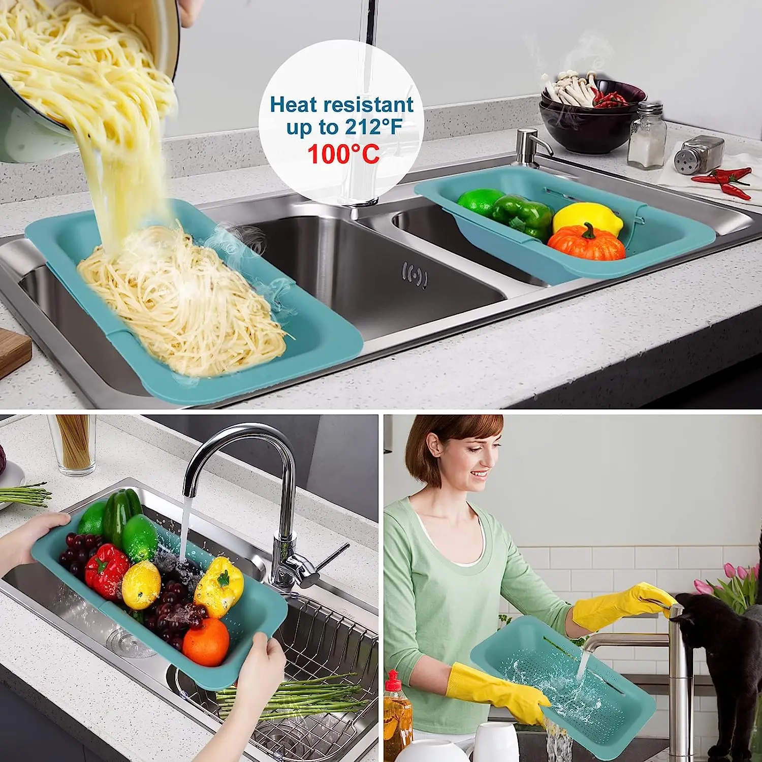 Складной кухонный выдвижной дуршлаг сливная корзина с ручкой над раковиной мытье овощей фруктов