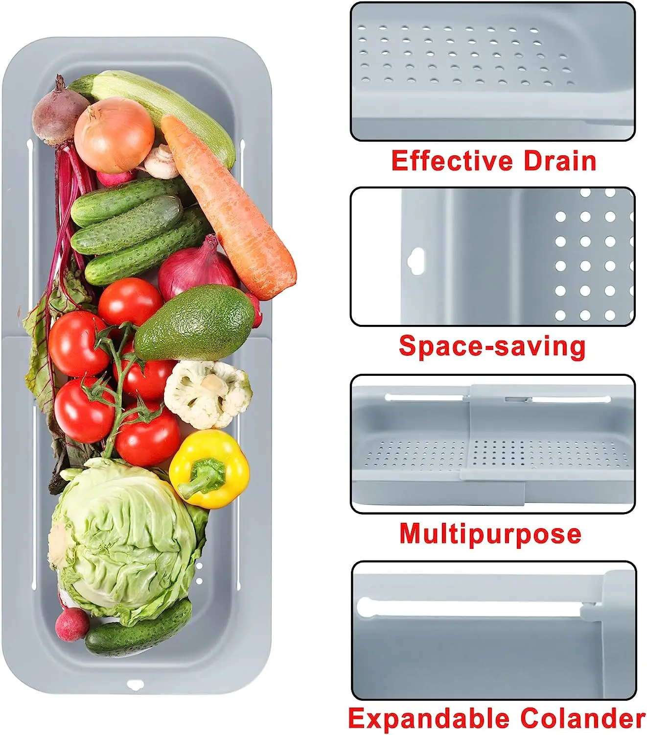 Collapsible Kitchen Extendable Food Strainer with Handle Over Sink Wash Vegetables Fruits Basket