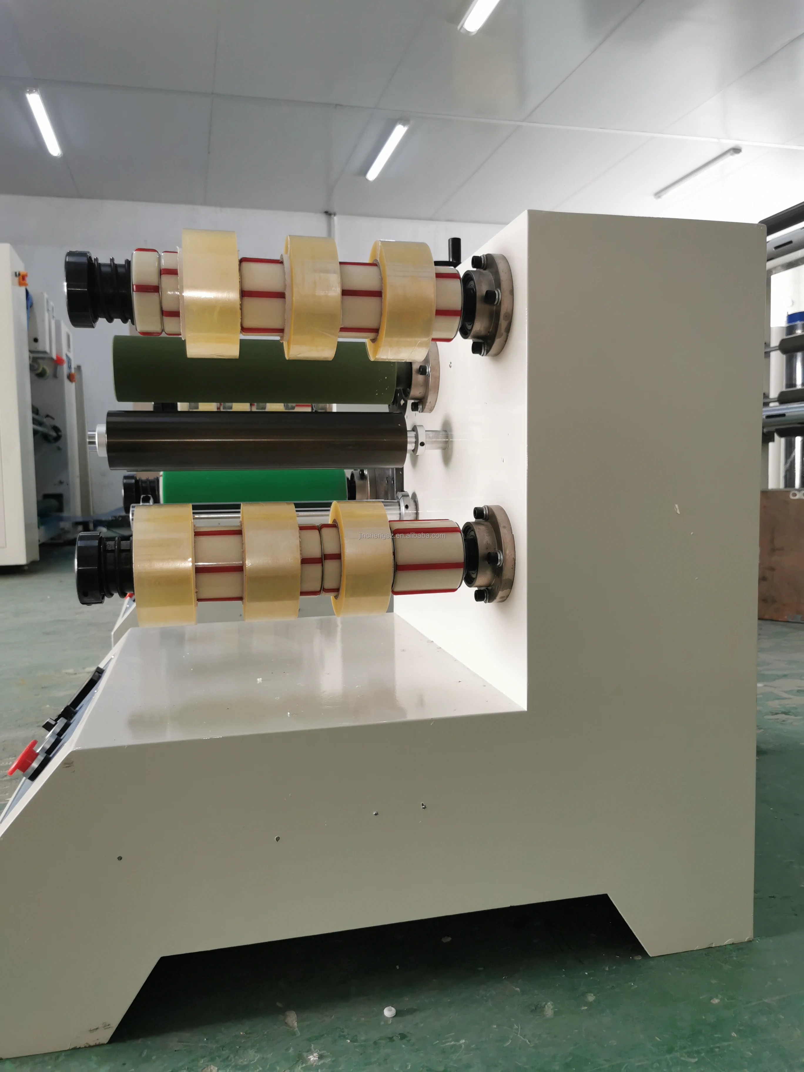 This Automatic Carton Sealer tape cutter and rewinder machine is specialized for cutting and rewinding the small rolls of adhesive tape or fabric, film.