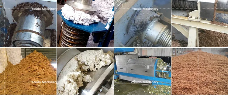 Function 1: our dewatering machine is suitable to dewater domestic garbage, vegetable market garbage, kitchen food waste,sawdust, beer residue and herb reside etc.