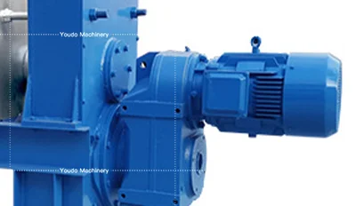The parameters of the spiral auger have been analyzed through mechanical calculations and special techniques have been used to increase axial thrust, completely solving the problem of non sustainable operation caused by slipping, bridging, and material return, and greatly increasing the processing capacity per unit time.