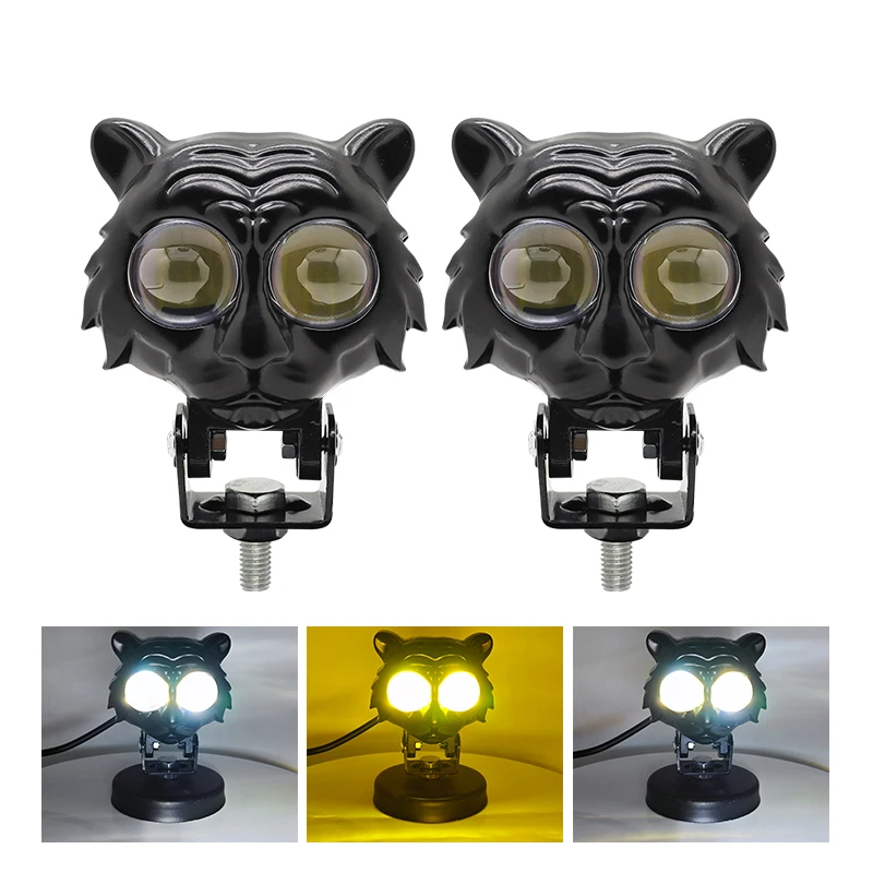 Оптовая Продажа с фабрики тигровый дизайн прожектор для мотоцикла двухцветная фара велосипеда вспомогательная Светодиодная