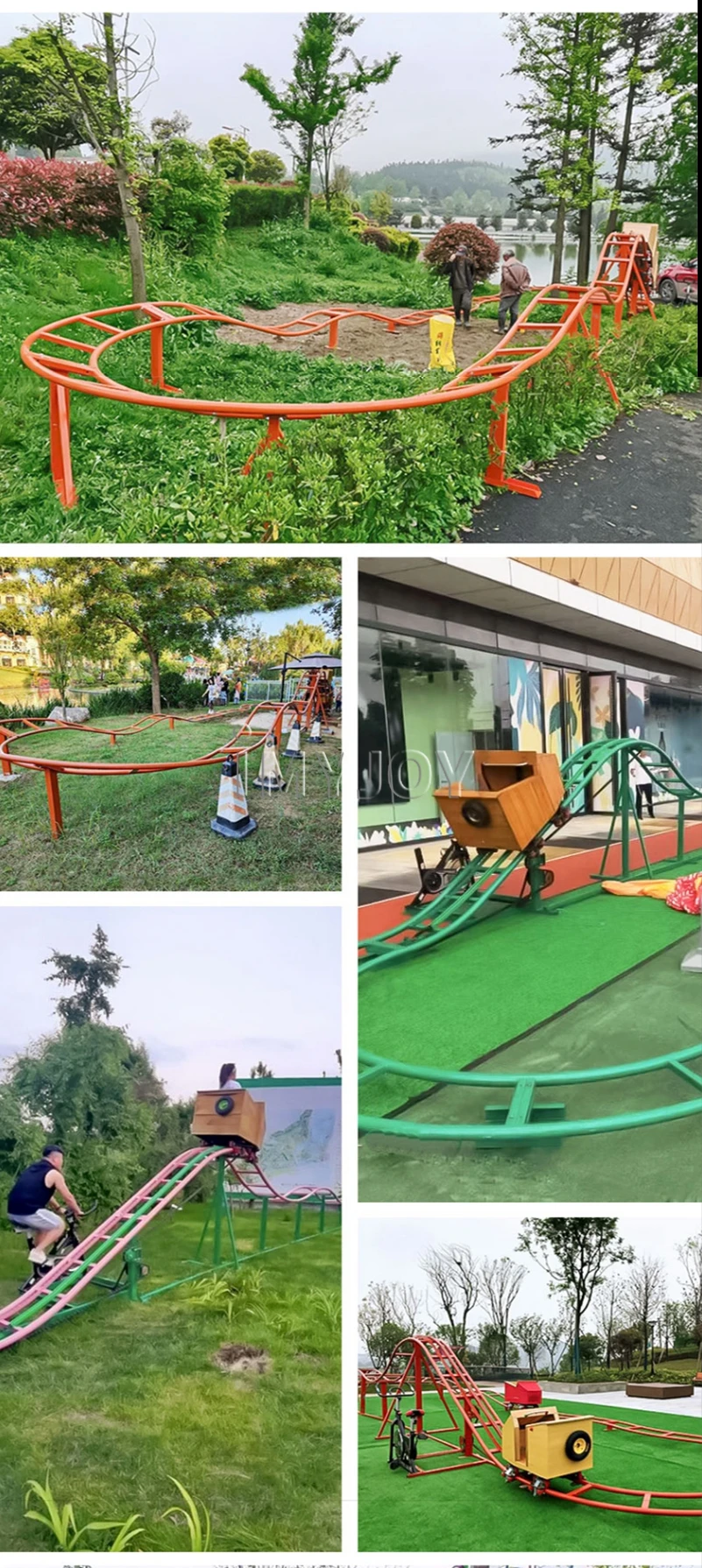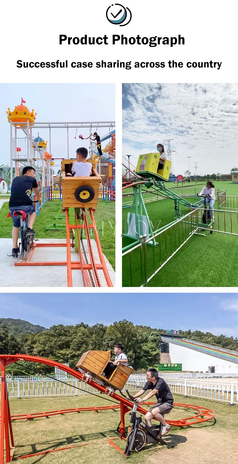 The unpowered model requires the participation of parents, pedaling the bicycle, driving the chain to drive the cockpit to the high point of the track, and the cockpit slides along the track to the starting point, which is to strengthen the body and have endless fun. Parent-child interaction increases company time and leaves good memories for children , to provide children with guts, and at the same time, it can also organize bicycle promotion time competitions. The faster you pedal, the shorter the promotion time. You can set prizes and rewards to highlight participation and competition.