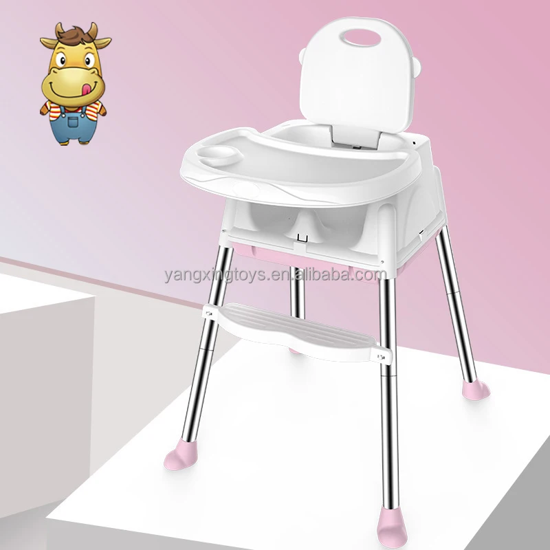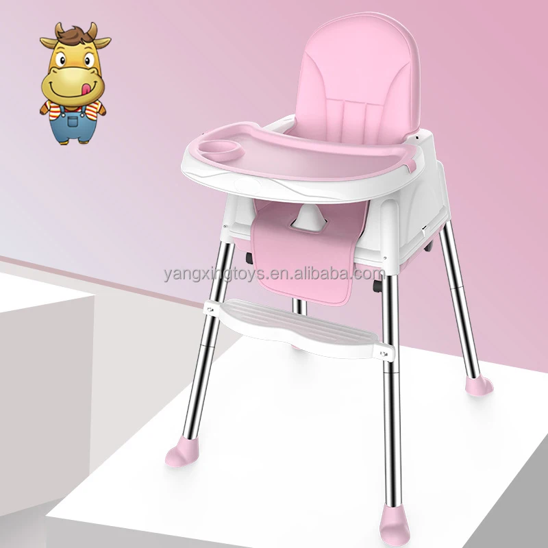 Baby High Feeding Chair Infant Foldable Height Adjustable kids Dinning Table Chair With Tray Belt PU Cushion