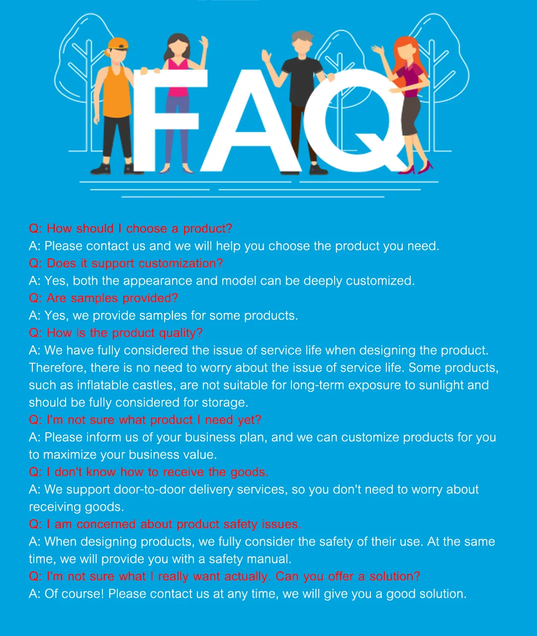 We have a professional team, including sales personnel, technical personnel, and customer service personnel, all of whom have rich industry experience and knowledge to provide customers with the best advice and support. Our products cover various types of amusement devices, such as children's playground devices, game consoles, electric amusement devices, etc., which can meet the different needs of customers.