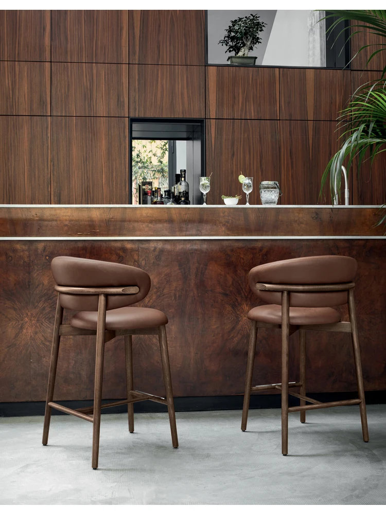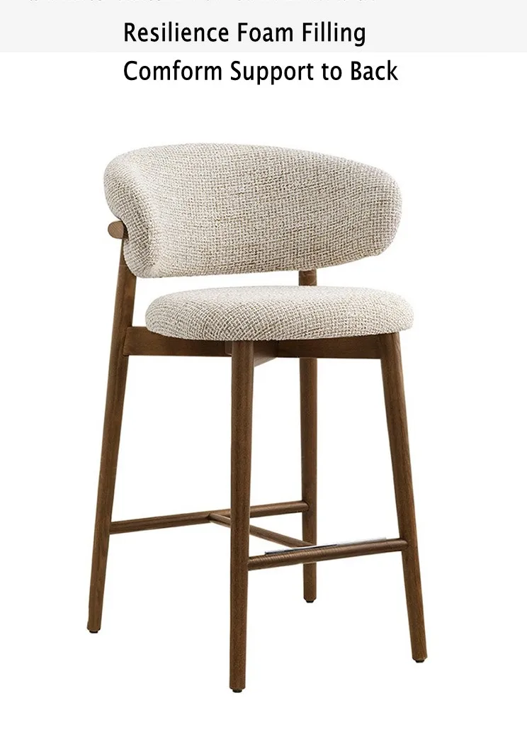 Nordic Bar Furniture Modern Solid Wood Frame High Bar Stool Withe Linen Fabric Bar Chair With Curved Backrest For Hotel