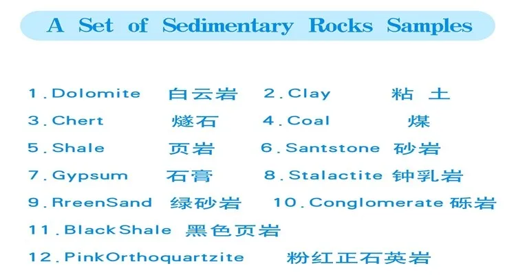Specification | 12 kinds of sedimentary rock samples |