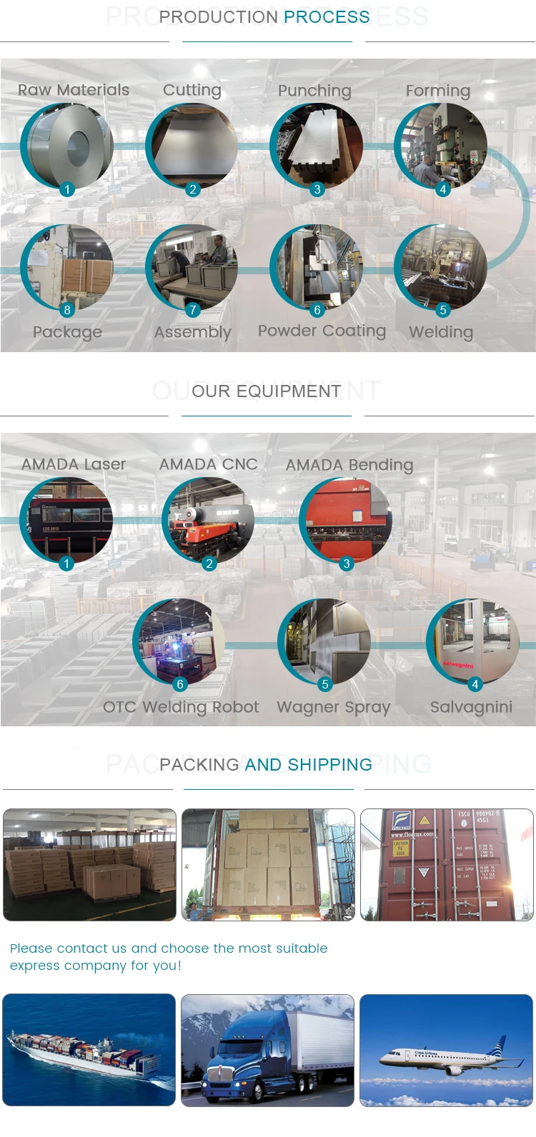Steelrix is equipped with excellent equipments. They are Amanda Laser cutting machine, Amanda CNC cutting machines,5 sets, Amanda bending machines 10sets , milling machines, drilling machines, welding robots, Wagner powder coating line,5set, etc. The quality of our products is fine in artwork, finishing and coating.