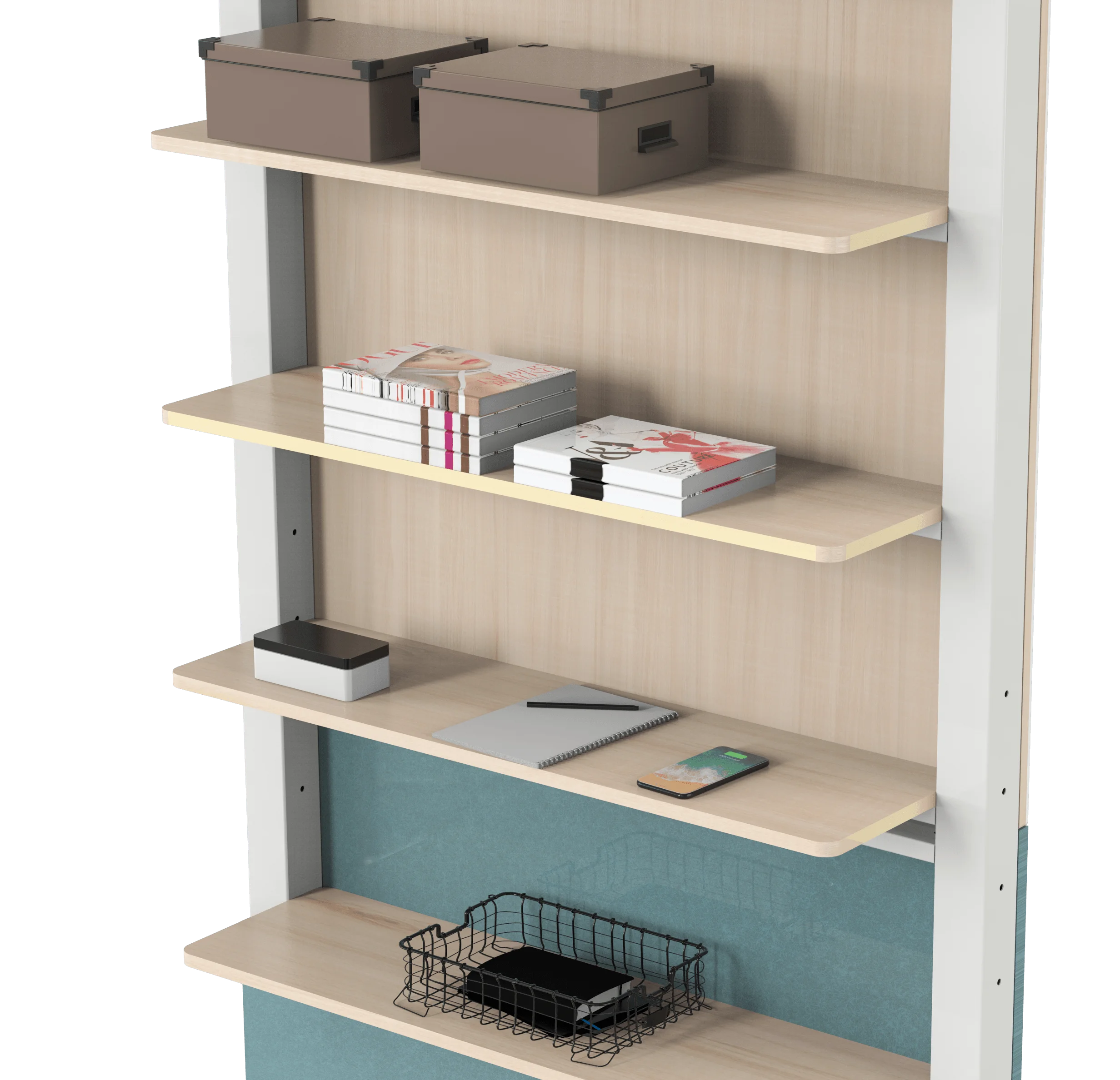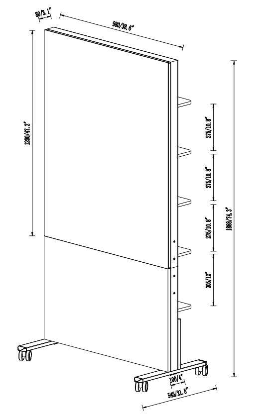 Half of the area of tempered glass surface to support writing, can be used in meetings or classes, toughened glass material is easier to wipe, ease of use to improve, the other half of the area is the acoustic cotton area (support for customised colours, materials and materials), can be used to post the announcement of nails as well as paper, to improve efficiency.