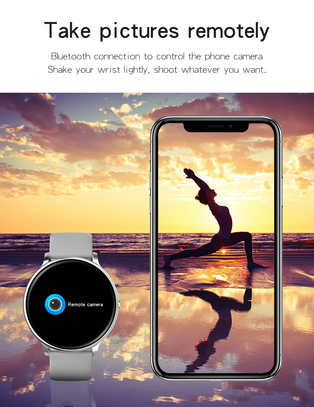 Function | Bluetooth phone、 Full touch, dynamic heart rate, replacement standby interface, call reminder/rejection, information storage, multi-sport mode, smart camera, stopwatch, Global font, information reminder, sleep monitoring, sports record (pedometer, calorie burning, mileage), alarm clock, find bracelet, find mobile phone, time, day, date display, sedentary reminder, 24h 12h time format selection, metric Inch choice |