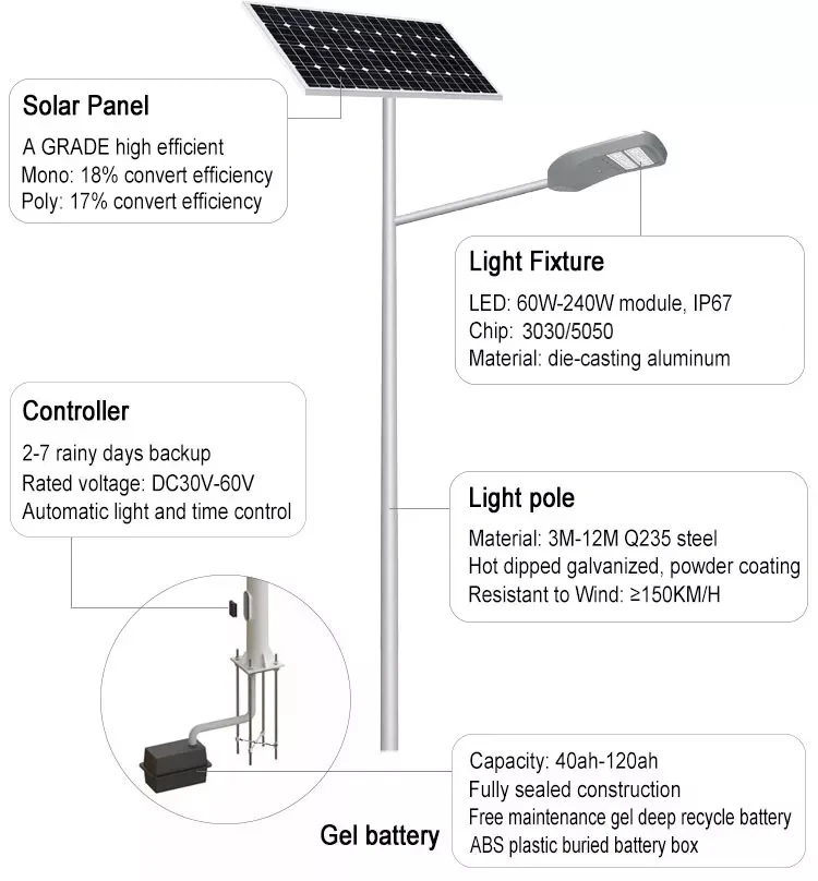 High Quality Stand Alone Smart Solar Street Light Integrated 20W To 80W All In One Street Light Lamp