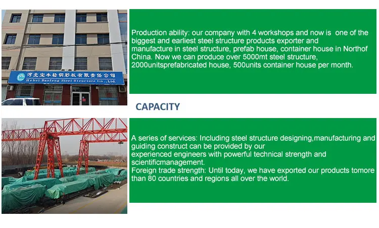 We are steel structure building manufacturer located in Hebei China, We were gaining good reputation among our customers for our professional, warm and thoughtful service. Because we know that a long terms business based on the quality control, price,packing,delivery time etc.