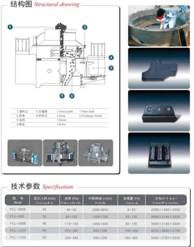 PCL Вертикальная ударная дробилка вала (машина для производства песка) Спецификация: