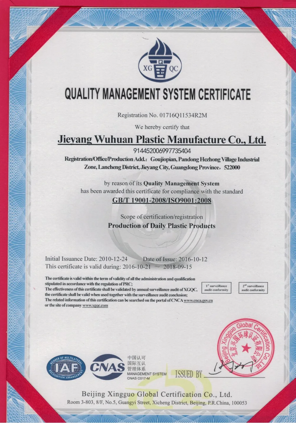 Wuhuan was successively awarded the certifications of ISO9001:2000, ISO9001:2008 and QS-9000 and manages 2 brands: shengfan and zhujiang, which enjoy good market in China and USA,Mexico,German,Malaysia ,Australia etc.