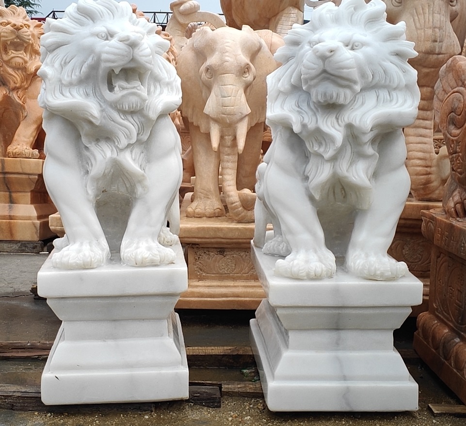 Индивидуальные садовые мраморные статуи льва каменные животные Лев наружное украшение в натуральную величину Мраморная Скульптура Льва US $500.00-$6000