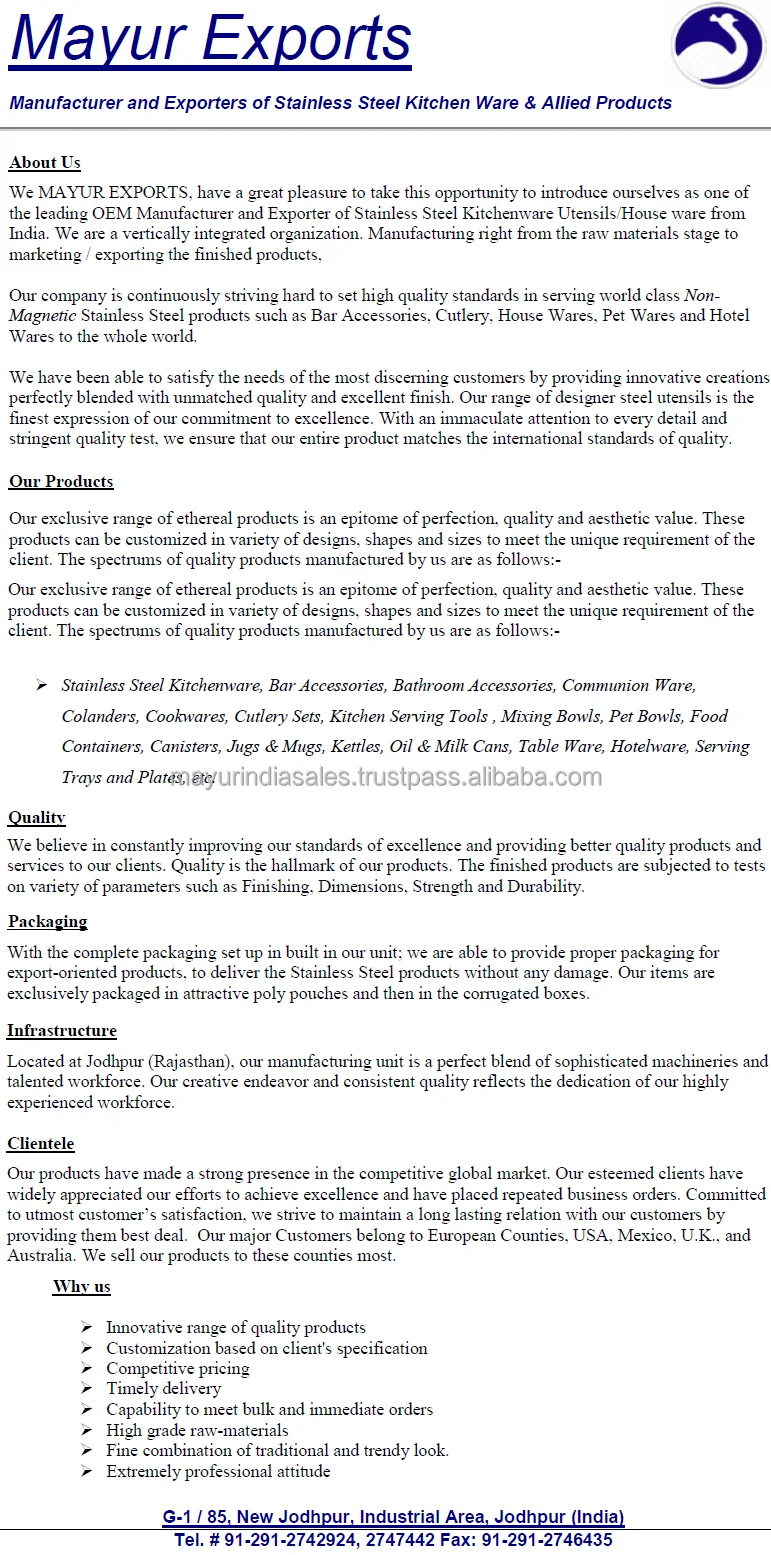 Brand Name | Mayur Exports |