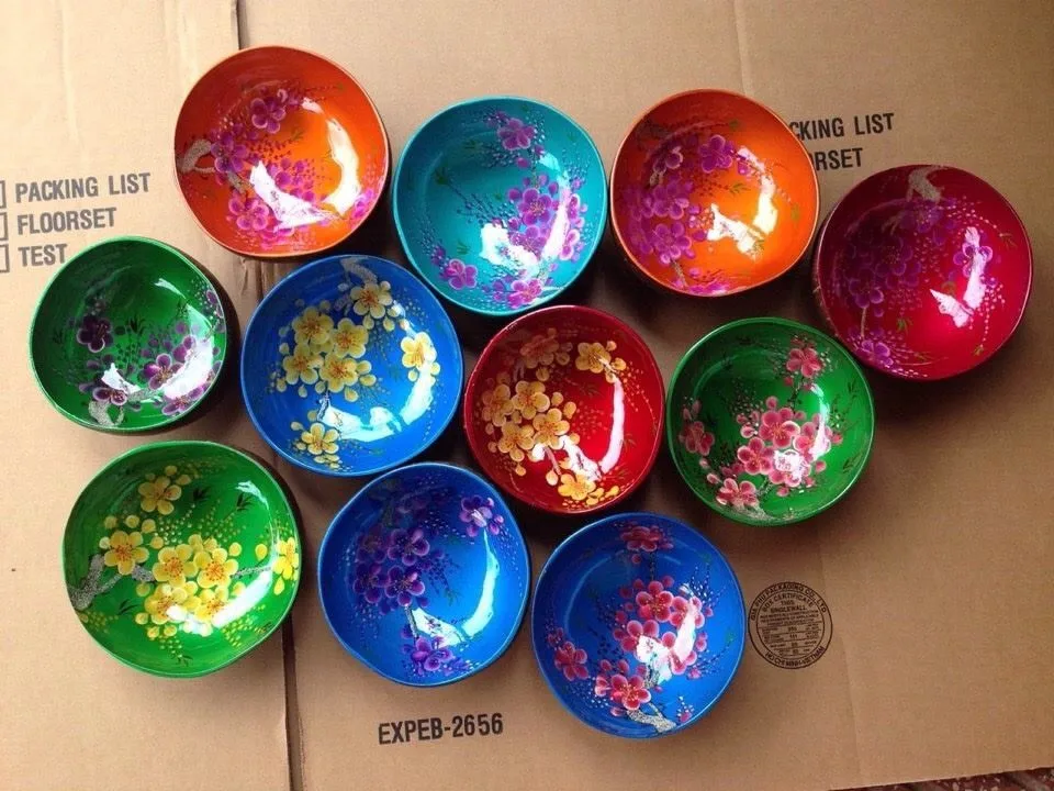 Лакированные кокосовые чаши для Вьетнама, набор лаковых кокосовых чаш, лакированные чаши ручной работы, вьетнамские чаши с кокосовым покрытием US $1.40