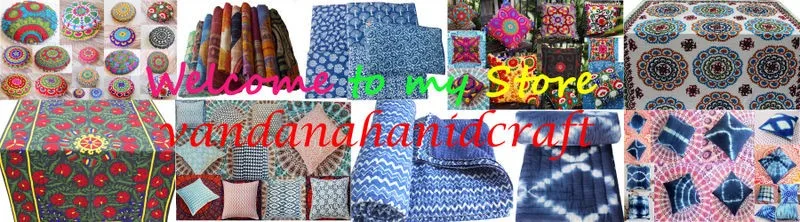 Vandana handicraft is the manufacturer, wholesale supplier and exporter of handmade kantha quilts, new Suzani, kantha bed sheets, kantha bags, hand block print, vintage quiltes, vintages begs, block print jaickets, bed cover, puffs, materes, cushion cover, pillow cover, table cover, sofa cover, bedding cover, tea coaster, umbrella stuffed toy's, scarf, slipper wall hanging, box cover and other Decorative items. Vandana handicraft has a well-organized setup in Jaipur to meet the compliance requirements of various buyers and agencies. It has been manufacturing all types of designer quilts, kantha and other Decorative items in Jaipur. At Vandana handicraft we have always tried our best to promote the rich Indian culture by way of our art. Our rich artistic work has enabled us to represent India in the International arena and also win laurels for our work.