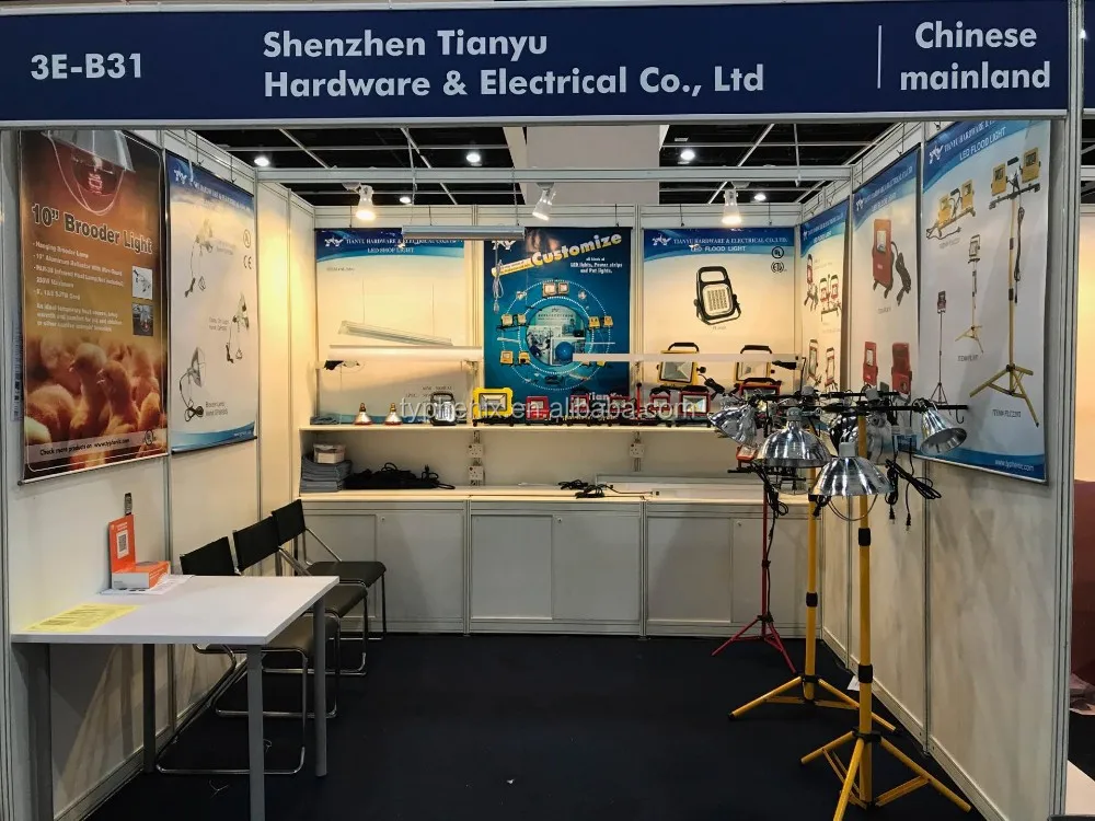 TIANYU HARDWARE & ELECTRICAL.,CO., LTD was founded in 2003. We are professional manufacturer speicialized in kinds of work lights, heating lamps and peripheral products. We have got the safety approvals such as UL, CSA, ETL, CCC, etc. There are more than 4,000 square meters and 120 employees in our company. We have been accredited ISO9001 for the Quality System since 2005.