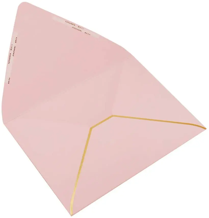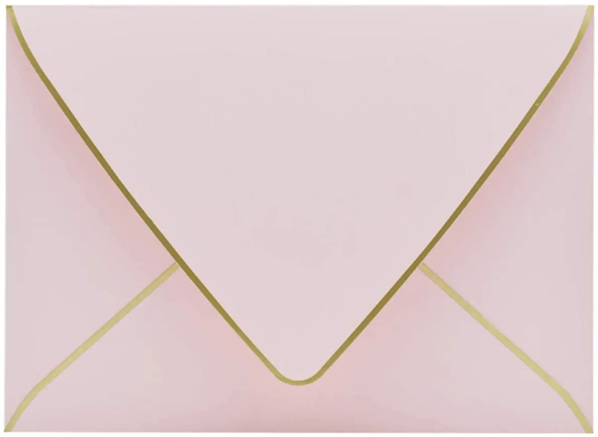 Item: | wholesale A7 Pink Envelopes 5 x 7 - V Flap with Gold Border |