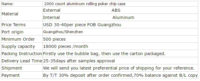 300pc/500pc /1000pc / 2000 pcAluminum Poker Chip Trolley Case