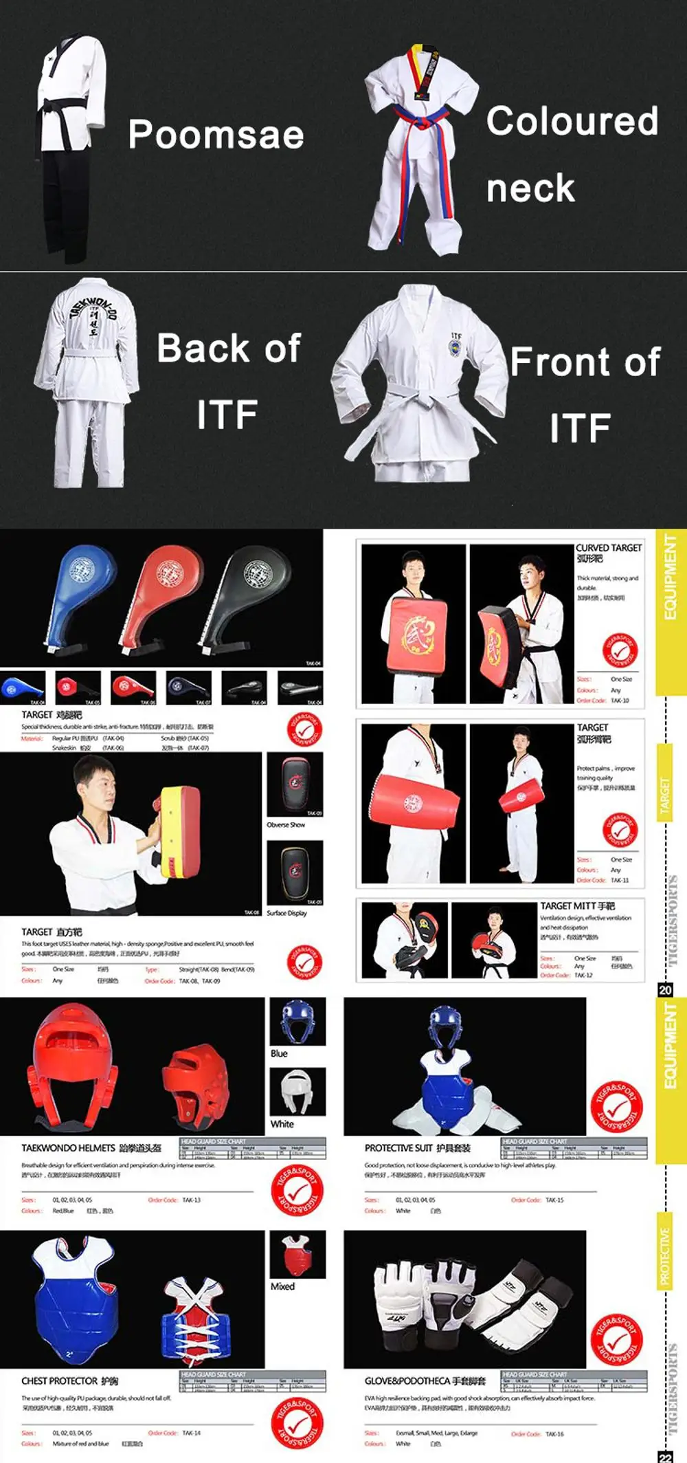Our production line includes martial arts uniforms and equipments,