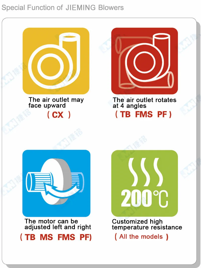 4. Специальная конструкция крыльчаток, делает высокое давление, большой поток воздуха, низкий уровень шума и более длительный срок службы.