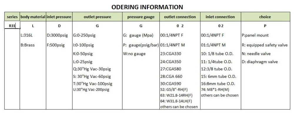 Outlet pressure gauge range:0-300PSI (other pressure guage ranges are available)