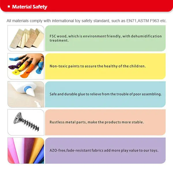 2) 100% quality inspection before Shipment. Keep the mass production same as the sample sent..Non-toxic paint for all the products which meet the related safety standards EN71,ASTM.