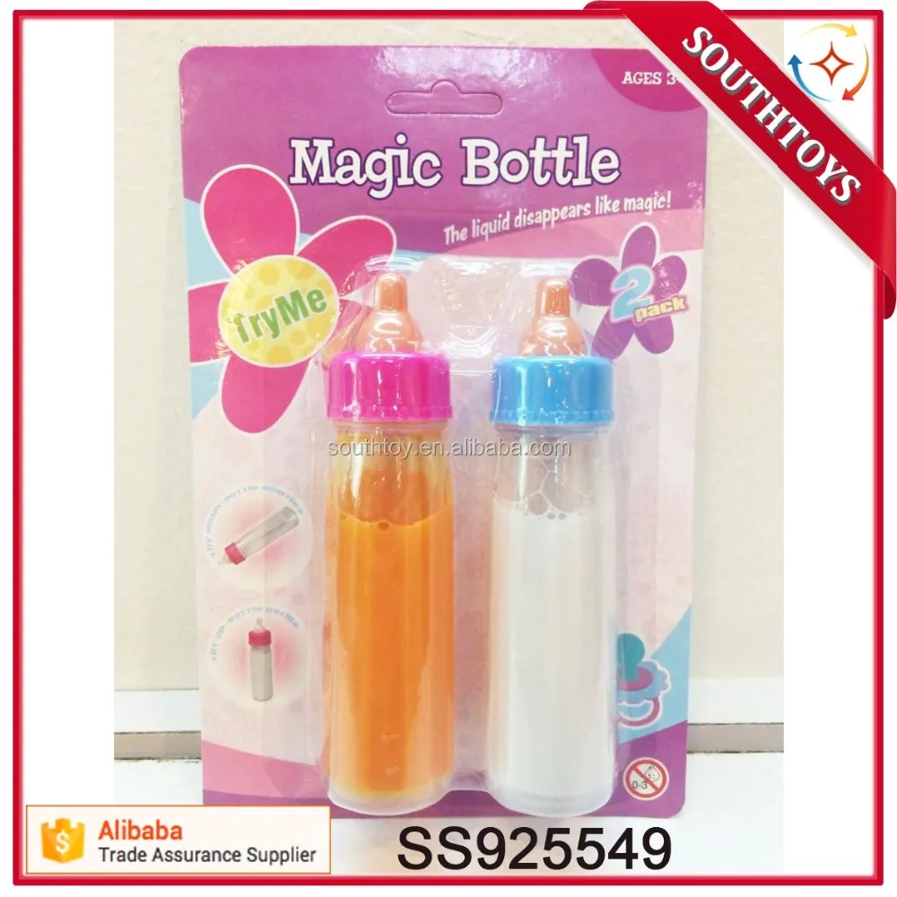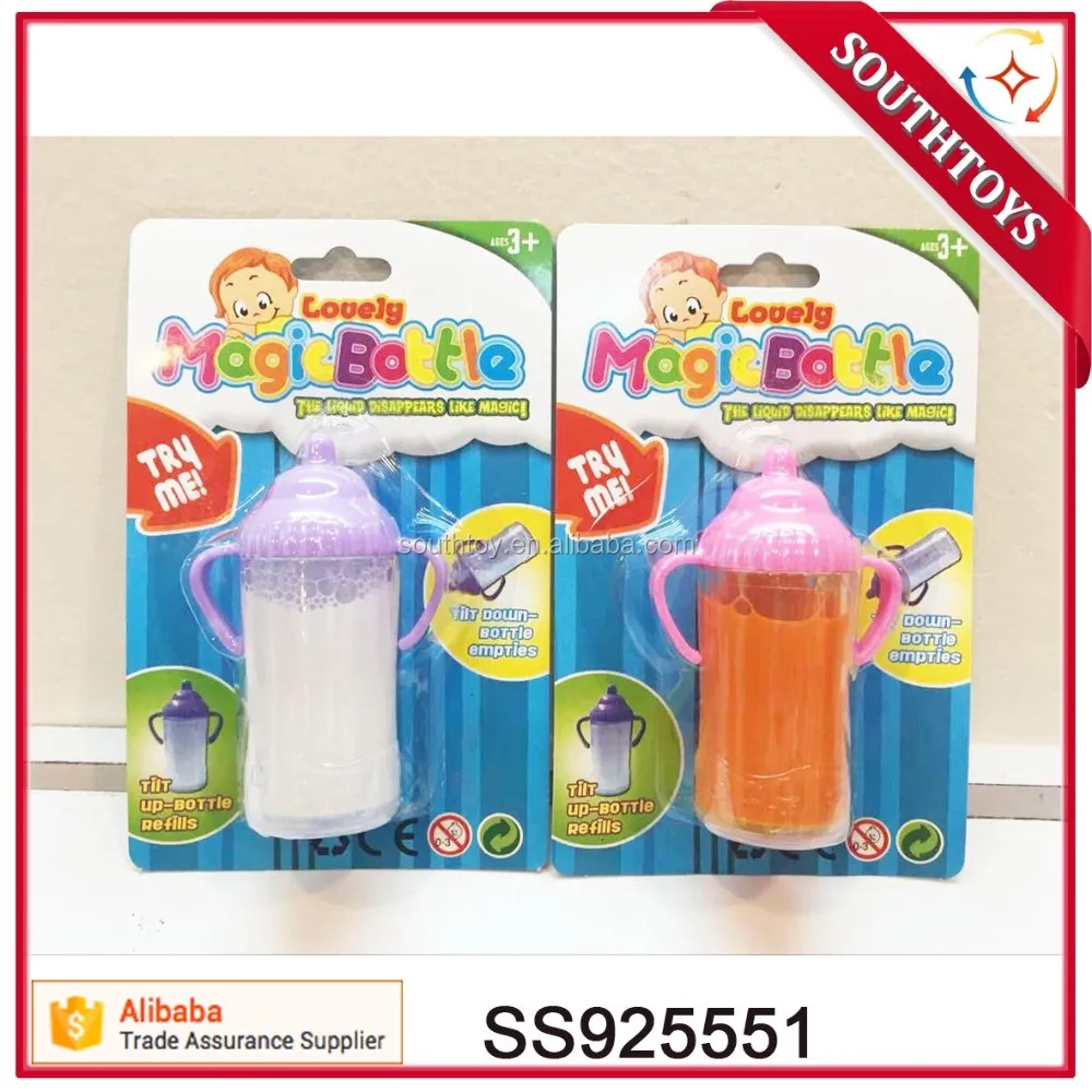 Product Description: Novelty Magic Disappearing Liquids Feeding Milk and Juice Toy Bottles for Dolls
