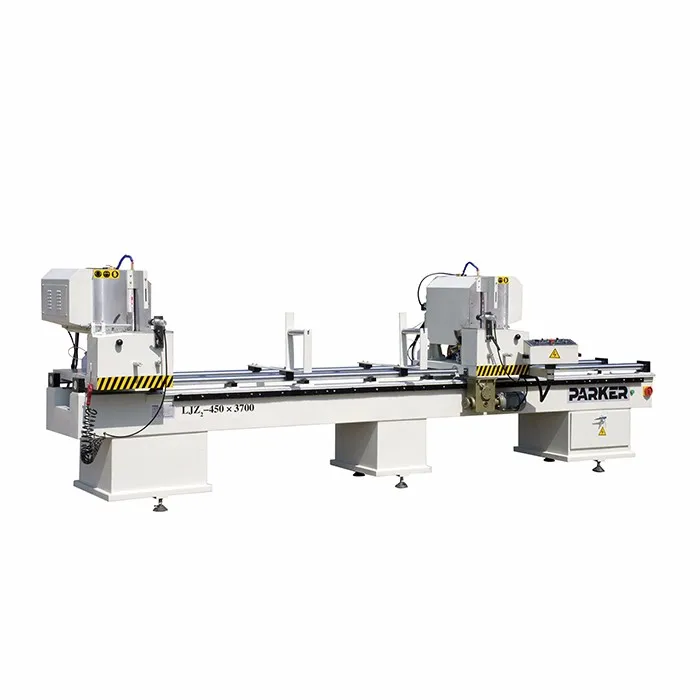 LJZ2-450×3700 double head cutting machine is used to process aluminum and plastic profiles. The saw king features pneumatic drive, linear and steady feeding. The movable saw head is dragged by the motor with easy operation. This double head saw has an alloy saw plate with high precision and long service life. It is also well received for sturdy structure and stable cutting capability. The double head cutting machine is also used for PVC profile cutting processing with saw head adjusting to 45° to 90°.