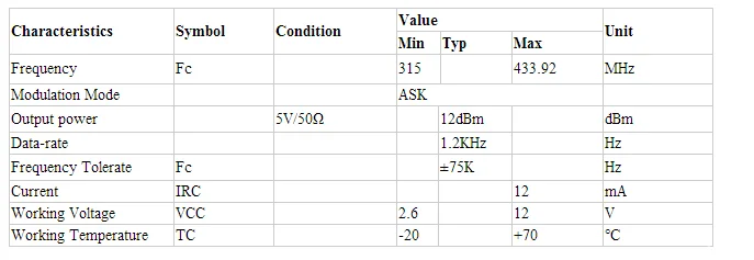 The CYT1 is an ASK transmitter module. It is simple to use with excellent performance. The CYT1 is designed specifically for remote-control, wireless mouse and car alarm system operating at 315MHz/433.92MHz.