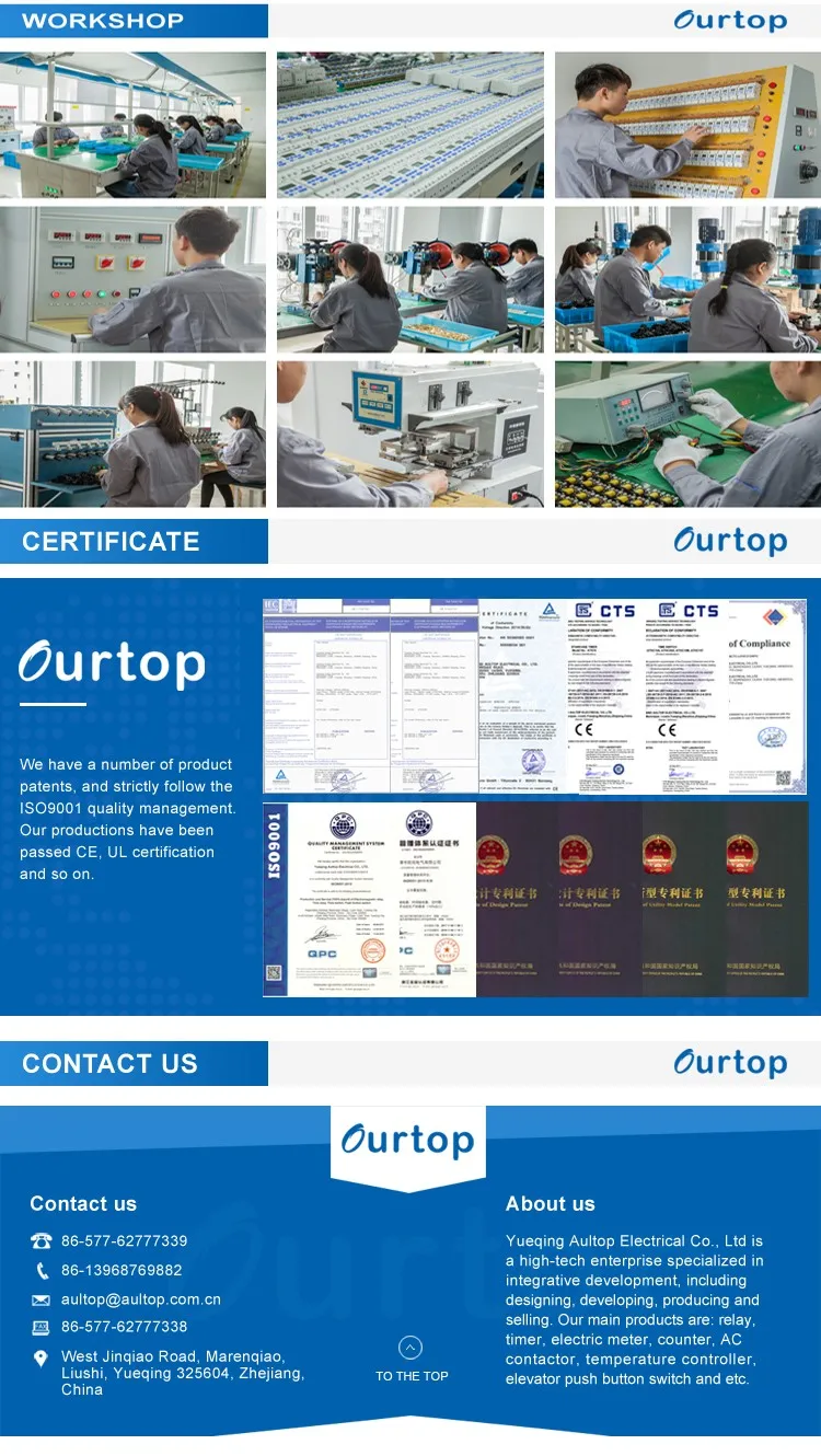 Yueqing Aultop Electrical Co.,Ltd is located in,Liushi,Yueqing,Zhejiang,China,We area high-tech enterrises soecialized in ,including designing, developing, producing and Selling. Ourmain products are: relay, timer, electric meter, counter, Ac contactor, temperatureController, elevator push button switch and etc.