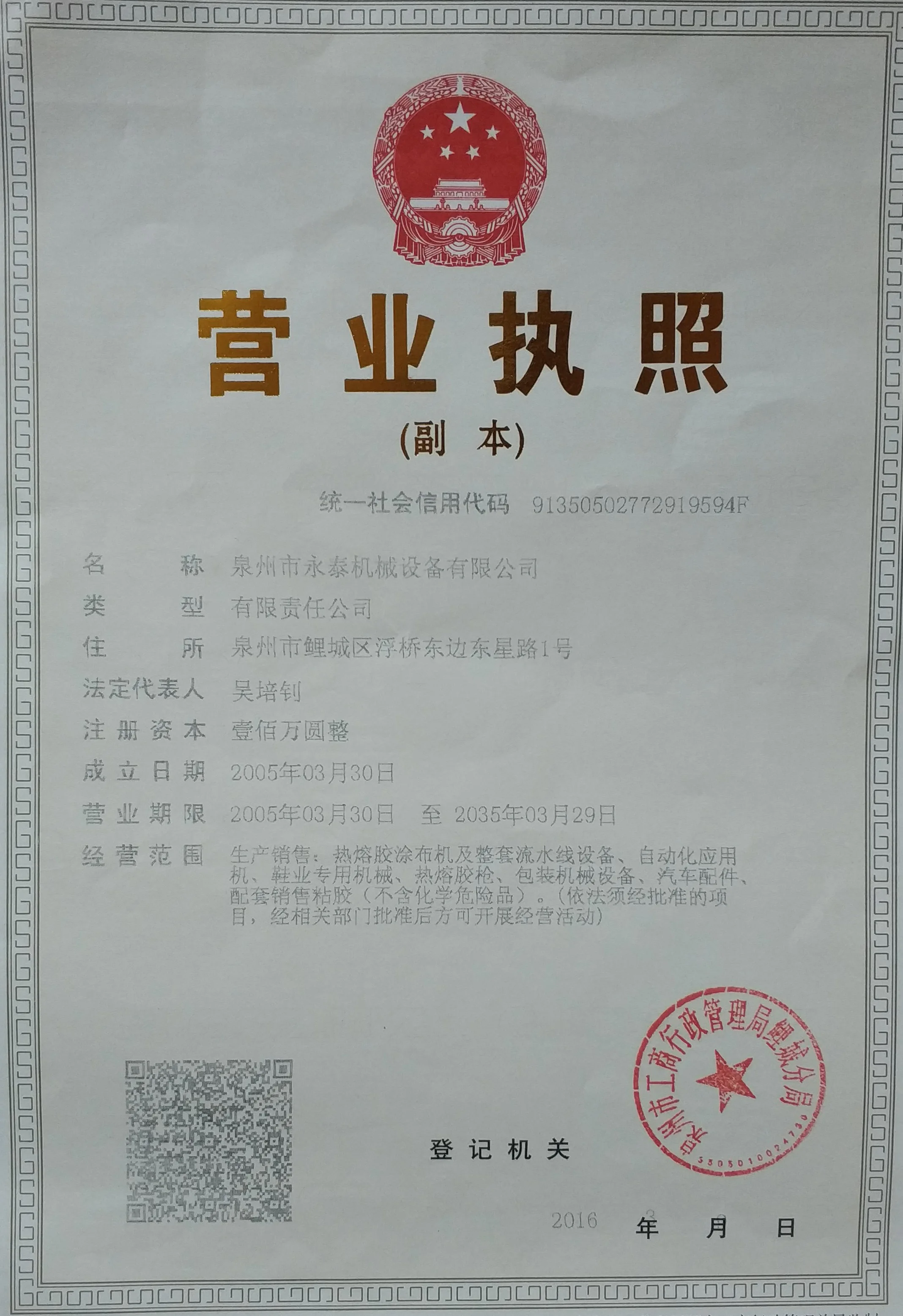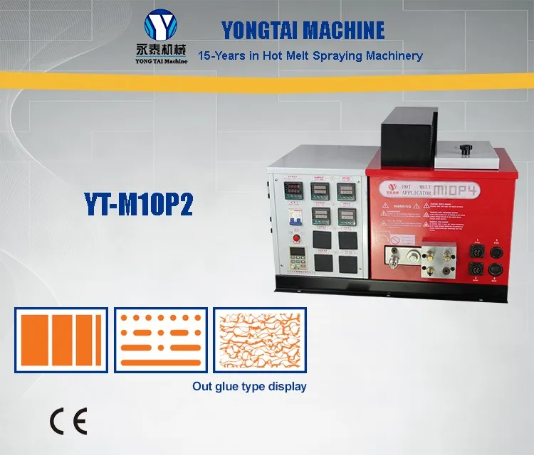 As a Hi-Tech enterprise, Quanzhou Yongtai Machinery Co., Ltd. has been specialized in the R&D and manufacturing of hot melt spraying and coating equipment for ten years. Our products can be widely used in such industries as footwear, clothing, packaging, compound & lamination, crafts, electronics, automobiles, printing and hygiene.