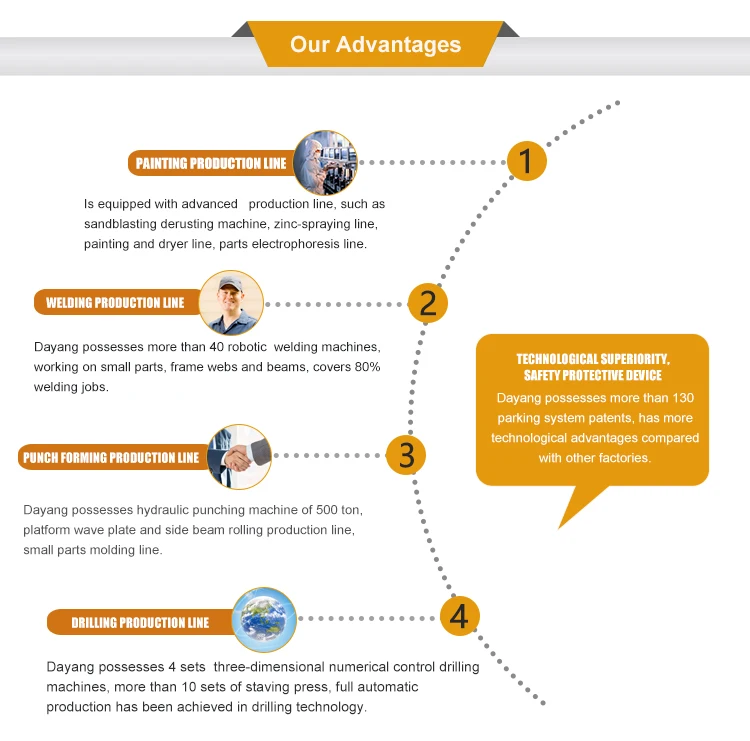 4) Save electric power, vertical circulating mechanical parking system typically does not require forced ventilation, no large-area lighting, power consumption only 35% of the common underground parking garage.