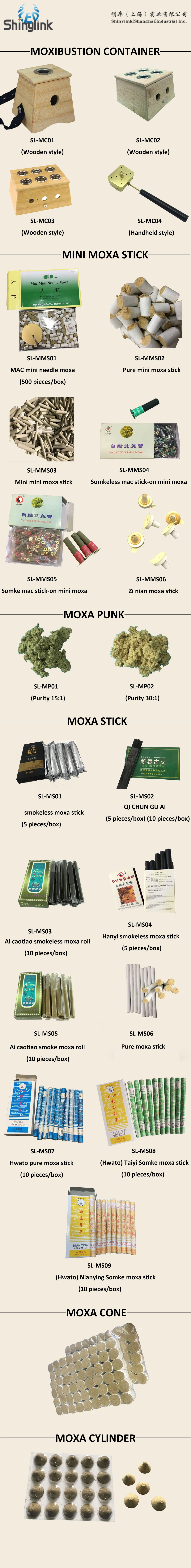 Moxa leaf Main efficacy Cure diseases by moxibustion, regulate qi and blood, remove cold dampness, warm main and collateral channels and hemostasis, relieve pain, war stomach, stop dysentery, expel stagnation, remove dampness and relieve itching. Application Mild moxibustion is executed by moxibustion apparatus fixed at all moxibustion is executed by moxibustion apparatus fixed at all the parts of human body; parting moxibustion is implemented as well. Specifications Loose moxa packed in a plastic bag. Taboo Those in syndrome of yin deficiency and blood heat and those in menstruation are strictly prohibited from using the product. Pregnant women shall follow the doctor's advice when using the product. Storage condition It should be placed in dry place. | ||||||