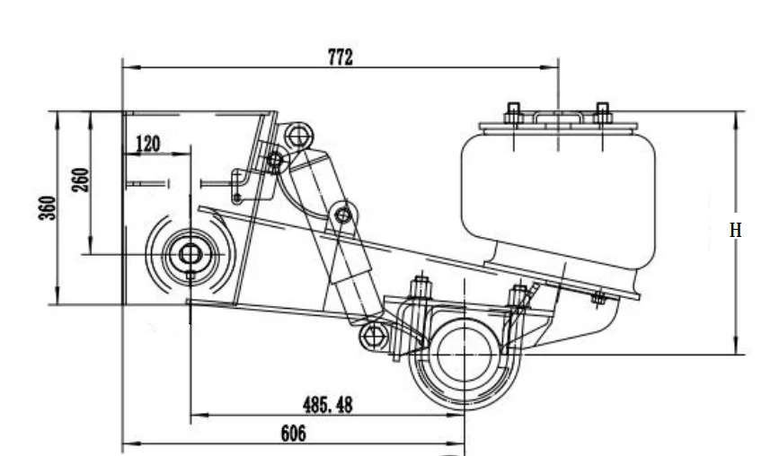 Model | H (mm) | Offset Distance (mm) | Axle Spacing (mm) | Air Bag Spec (mm) | Axle Load (kg) | |||||