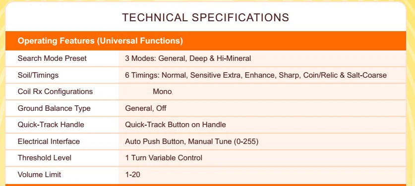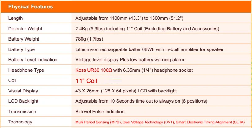 This model is intended for the experienced treasure hunter who demand high performance and extreme sensitivity.