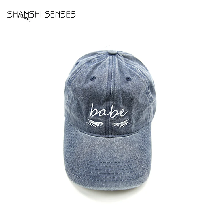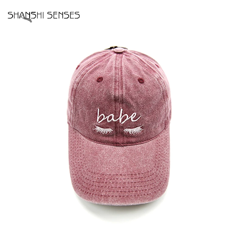 | Custom 100% Cotton ladies eyelash embroidered stone washed hat | |