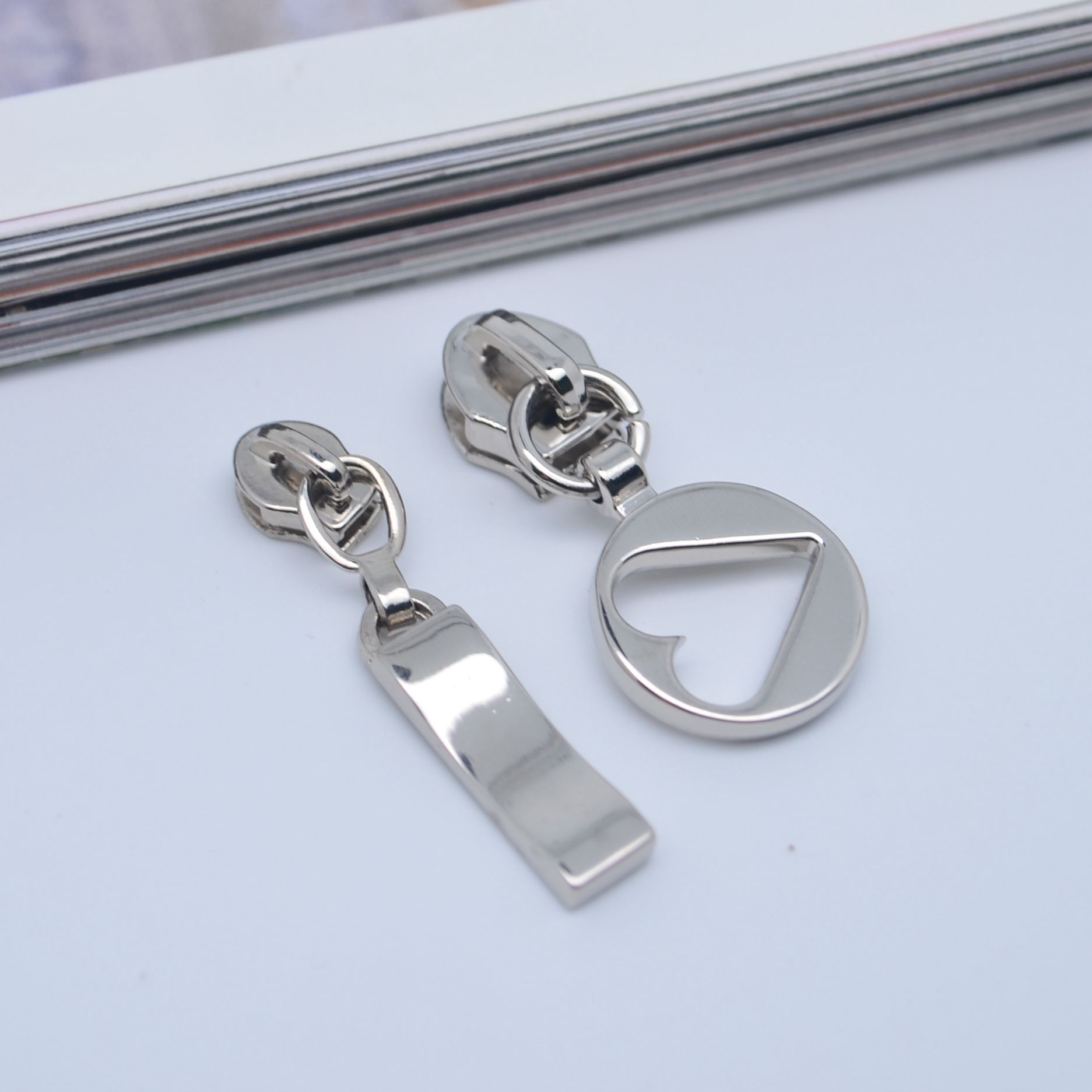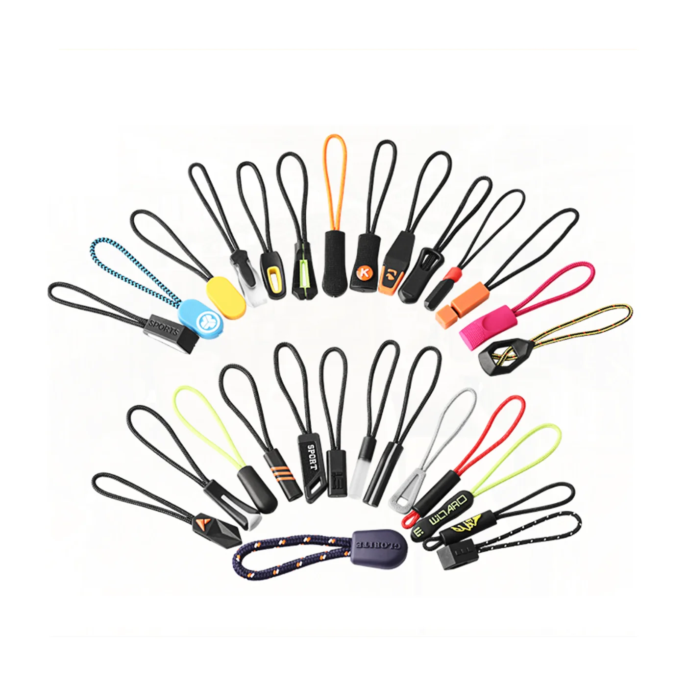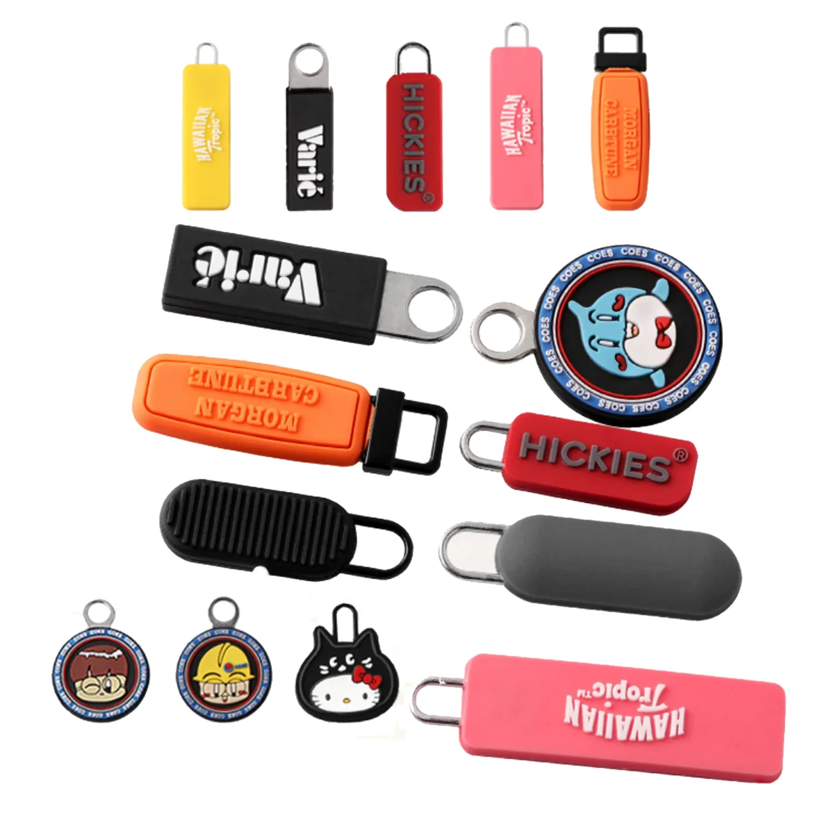We produce custom zipper pulls in a variety of materials and styles suitable for all types of garments and accessories to enhance your fashion creations and increase brand awareness. View examples below