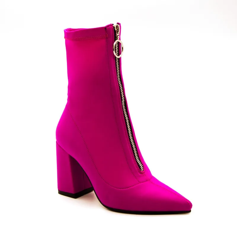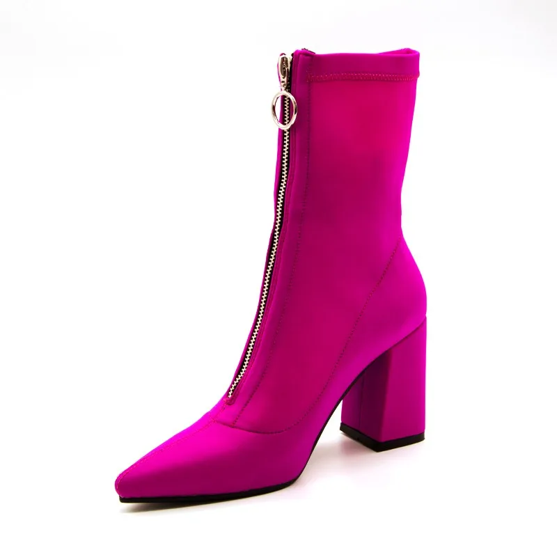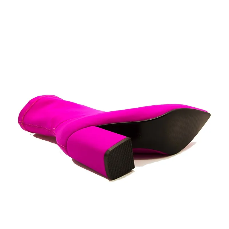 New Arrival 2018 Fashion Girls High Heel Ankle Boots Pointed Toe No Lace Lycra Boots Winter