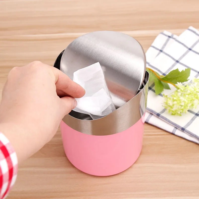 Настольный Металлический Мини-органайзер для мусора с бамбуковой крышкой для кухни ванной комнаты US $2.97-$3.60
