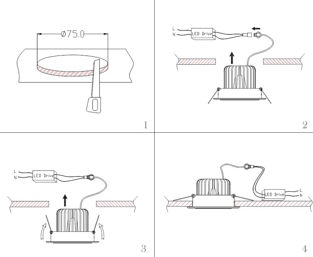 Model | Dimension(mm) | Cut out(mm) | Power | Luminous |