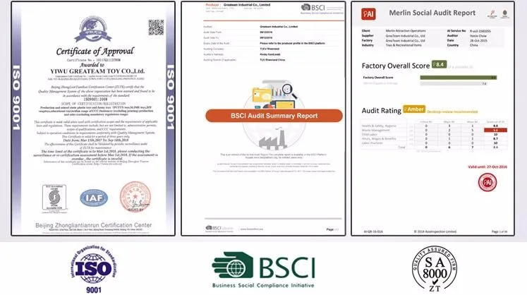 We have ISO9001:2000, WCA, SQP, HASBRO audit.