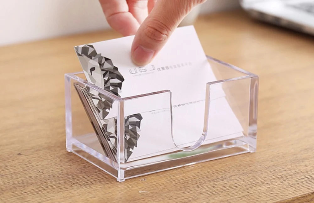 High-Quality - Heavy cast clear acrylic desktop business card organizer combines elegance and durability.