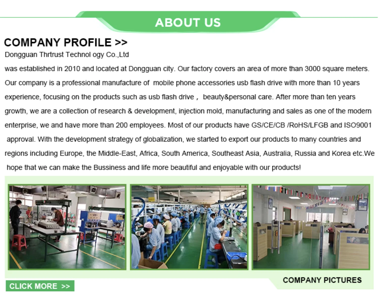 Мы выполняем строгий процесс контроля качества в соответствии со стандартом ISO9000, FCC и CE. Наш отдел контроля качества полностью оснащенный передовыми машины и высокое качество техника.