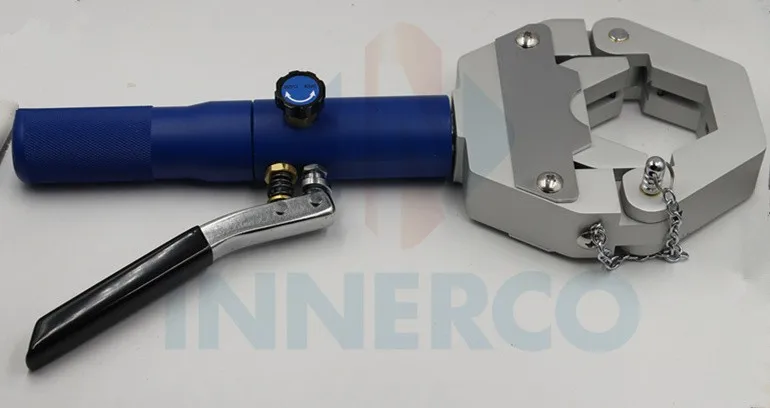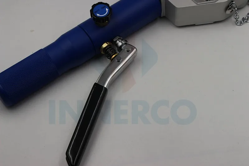 Easy to use hydraulic hand-held pump crimps the hose fitting in under 10 pumps.