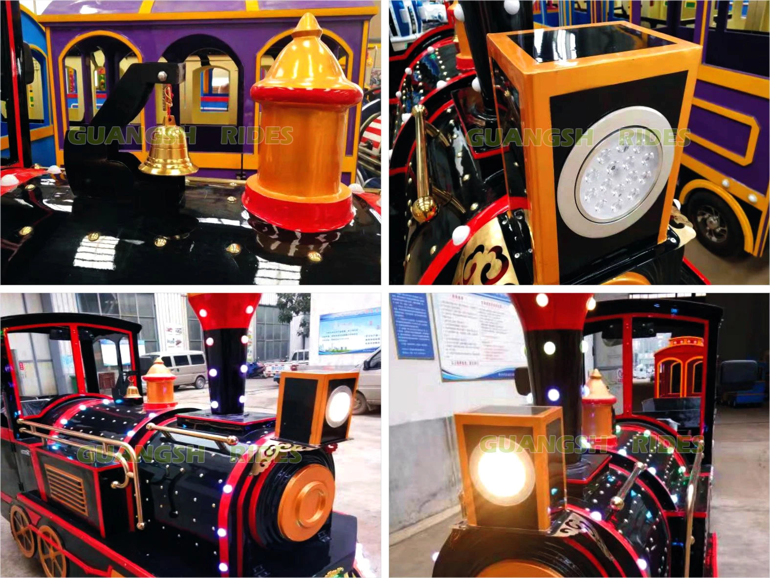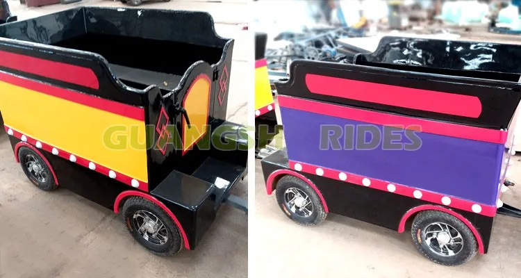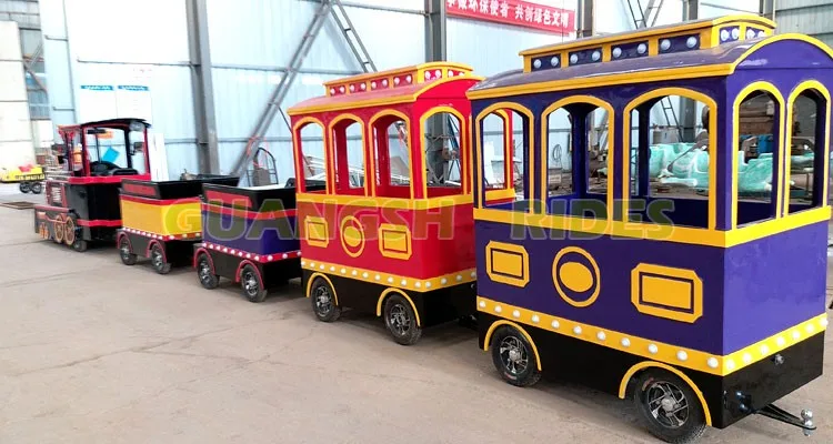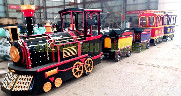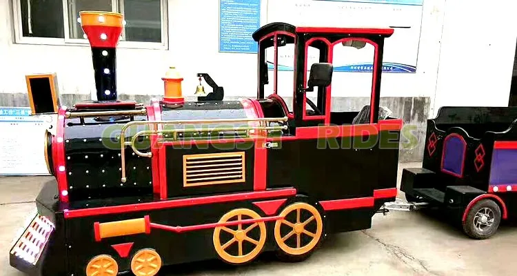 Electric trackless train is a kind of small train equipment without track, which is powered by rechargeable batteries. Trackless train is environmental protection. Use high quality fiberglass cabins, environmental protection and durable! The antique style train is very popular in today's fashion elements. The train includes several wagons, and there are many sets of tires under the wagons.It can run on any flat road. The running range is more extensive, not restricted by the site. Trackless train can be used indoors and outdoors, very popular in large business center, square, scenic area and so on.
